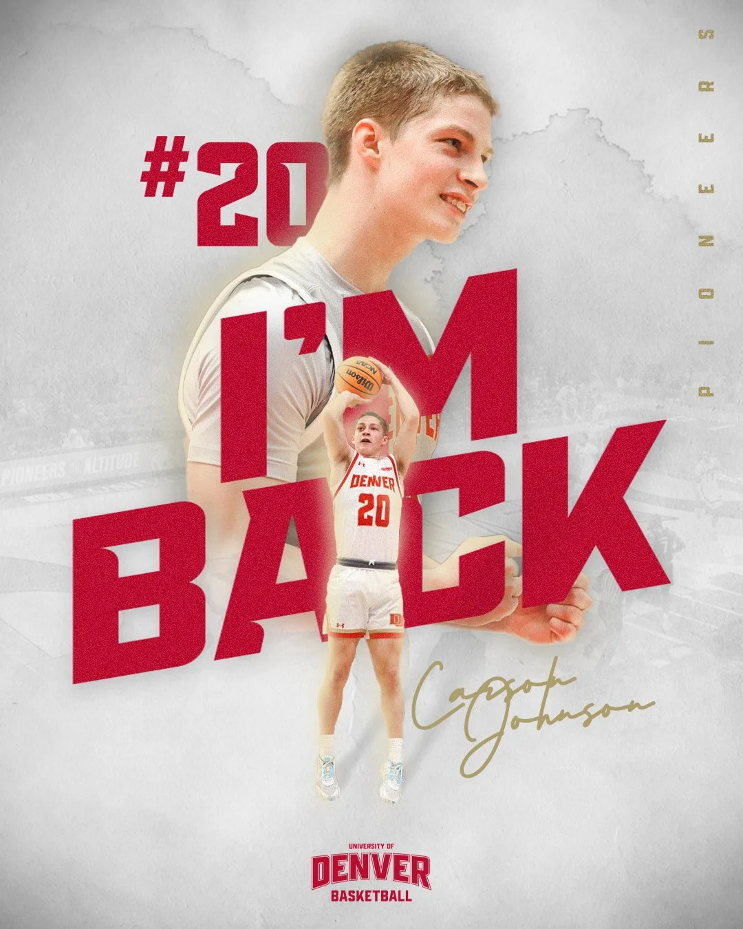 Overview: Each season, the University of Denver Athletics visual identity is refreshed through an annual graphics system built specifically for the Denver Pioneers. The campaign develops a cohesive look and feel that carries across all social media channels, from game-day posts to announcements and promotional content. Provding the communications staff a ready-to-deploy visual toolkit that's consistent, on-brand, and built for their workflow.